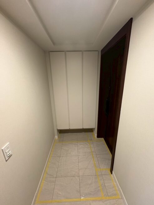 フローリング張替え、クロス張替え、巾木交換、シート貼り(LDK下枠)、棚板交換、